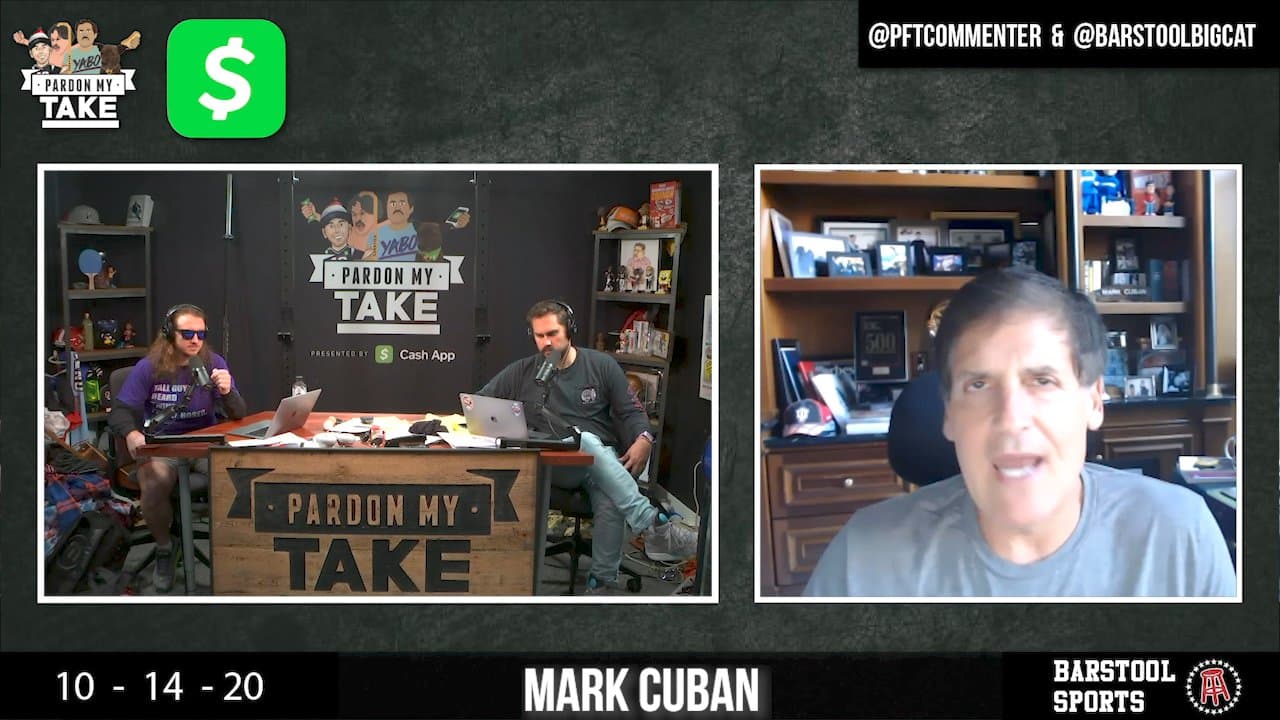Before letting him go, Billy Football stepped up to the plate to pitch Cuban on his brand new app, 'Gala' (or as the guys renamed it, 'How Many Dudes?'). Billy’s vision involves crowdsourcing the gender ratio and 'vibe' of bars in real-time so people don't waste their night at a sausage fest. Cuban gave him some genuine advice, though he was rightfully skeptical about Billy actually having the 'back-end' of the app coded by his former college teammates.